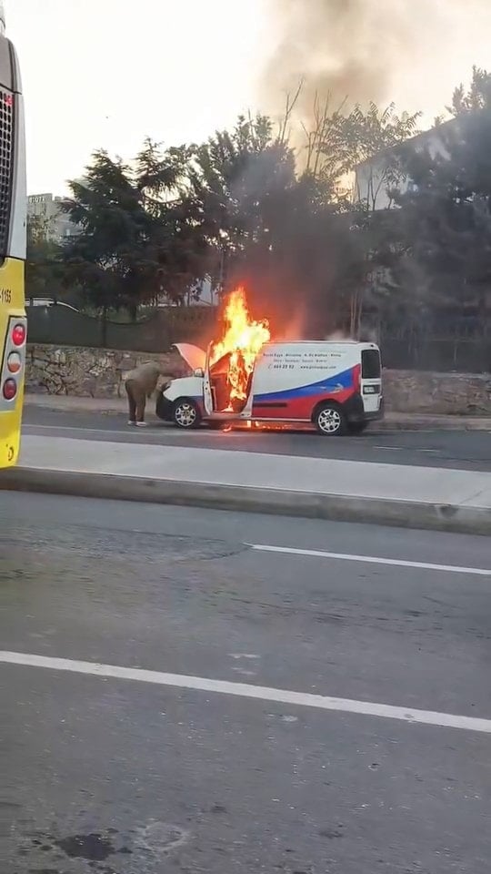 İstanbul Kağıthane’de saat 08.00 sıralarında Cendere Caddesi üzerinde hareket halindeki hafif ticari araçtan dumanlar yükselmeye başladı. Motor bölümünde başladığı belirtilen yangın kısa sürede aracı sardı.